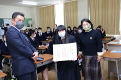 国際協力中学生エッセイコンテスト外務大臣賞の賞状を伝達いたしました 2020年度 トピックス Jica関西 Jica